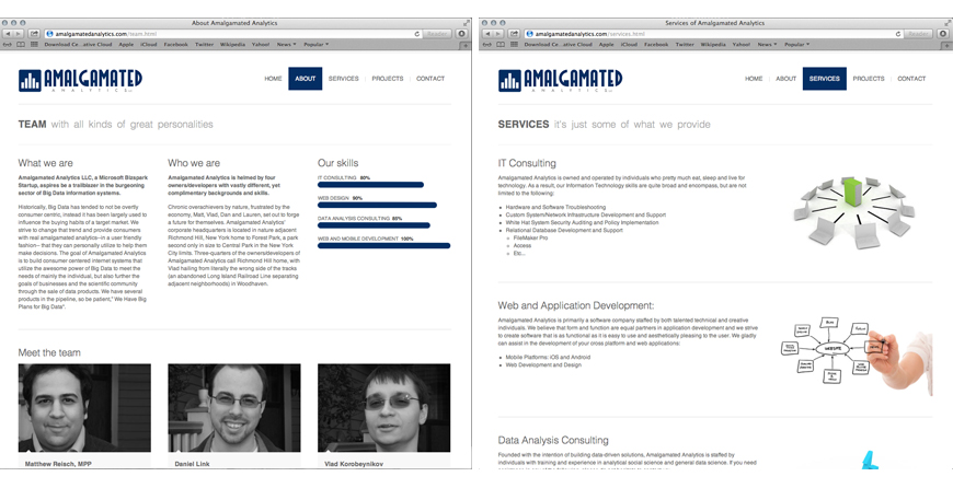 A start-up in desperate need of an identity and website, Amalgamated Analytics reached out to me to create them an identity and a website to get them up and running. The website is responsive so anyone can see it anytime. I created a simple icon that can be used on their products, that both visually describes the name of the company and represent the letter A. With the typography, we wanted to showcase a bit of an art deco theme.
