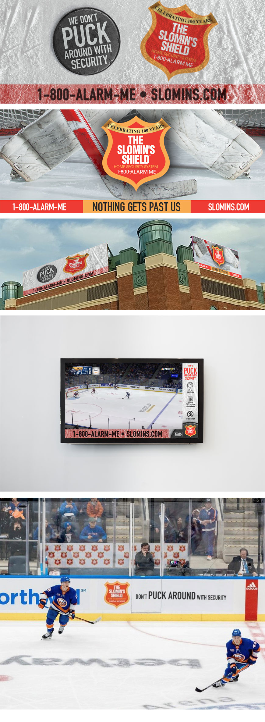 What happens when you mix one local long-standing company with one professional local hockey team? A very clever ad campaign. Celebrating 100 years in business, Slomin's became an official sponsor of the NY Islanders, who are celebrating 50 years of their team. Using a clever tagline, Slomin's celebrated this partnership with a full stadium takeover created by myself. For all home games, there are 2 digital billboard designs that can be seen from outside the stadium, an L-Wrap that surrounds broadcasts on all in-stadium monitors, a dasher rink wall panel, and a Slomin's pattern wall in the penalty box. When millions of eyes watch the Islanders, they get to see our memorable advertising.